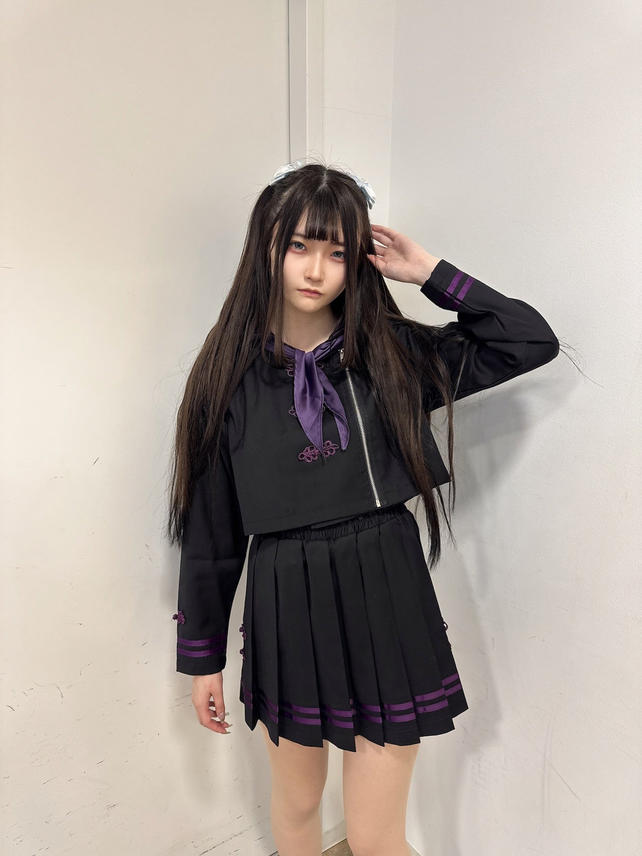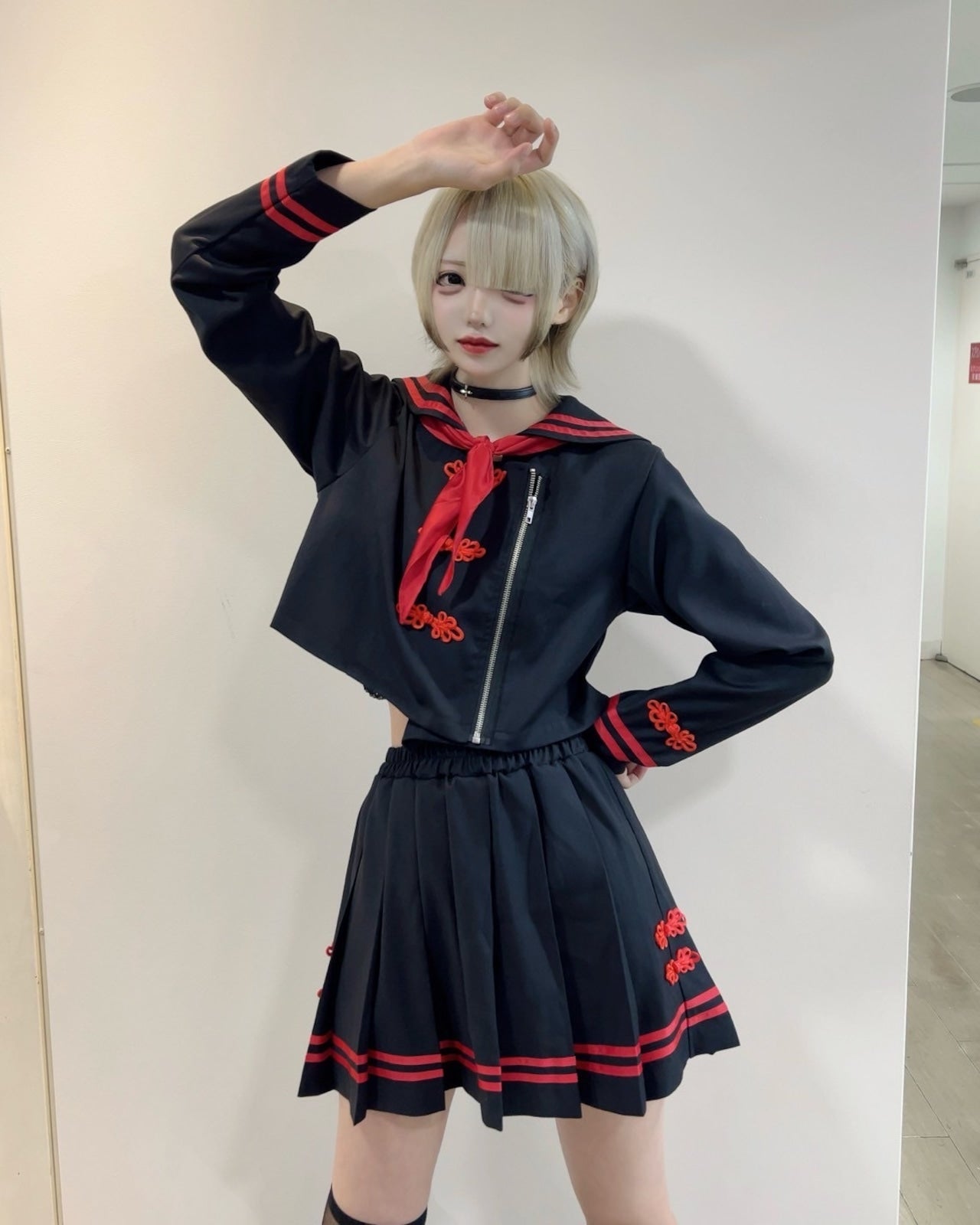 クロップド丈のトップスにアシンメトリーZIPを合わせ、量産・地雷系コーデにも相性抜群の一着に仕上げました。