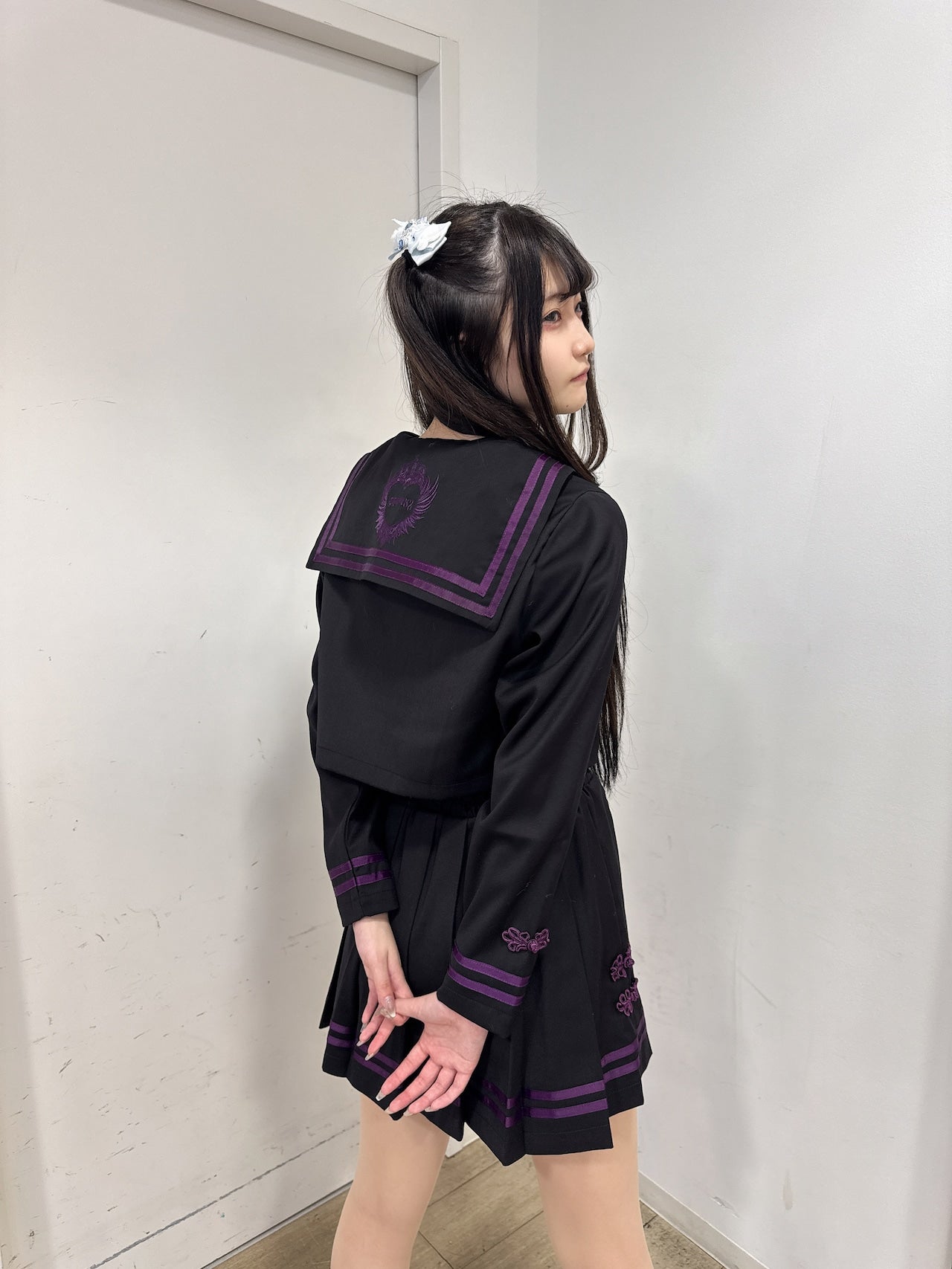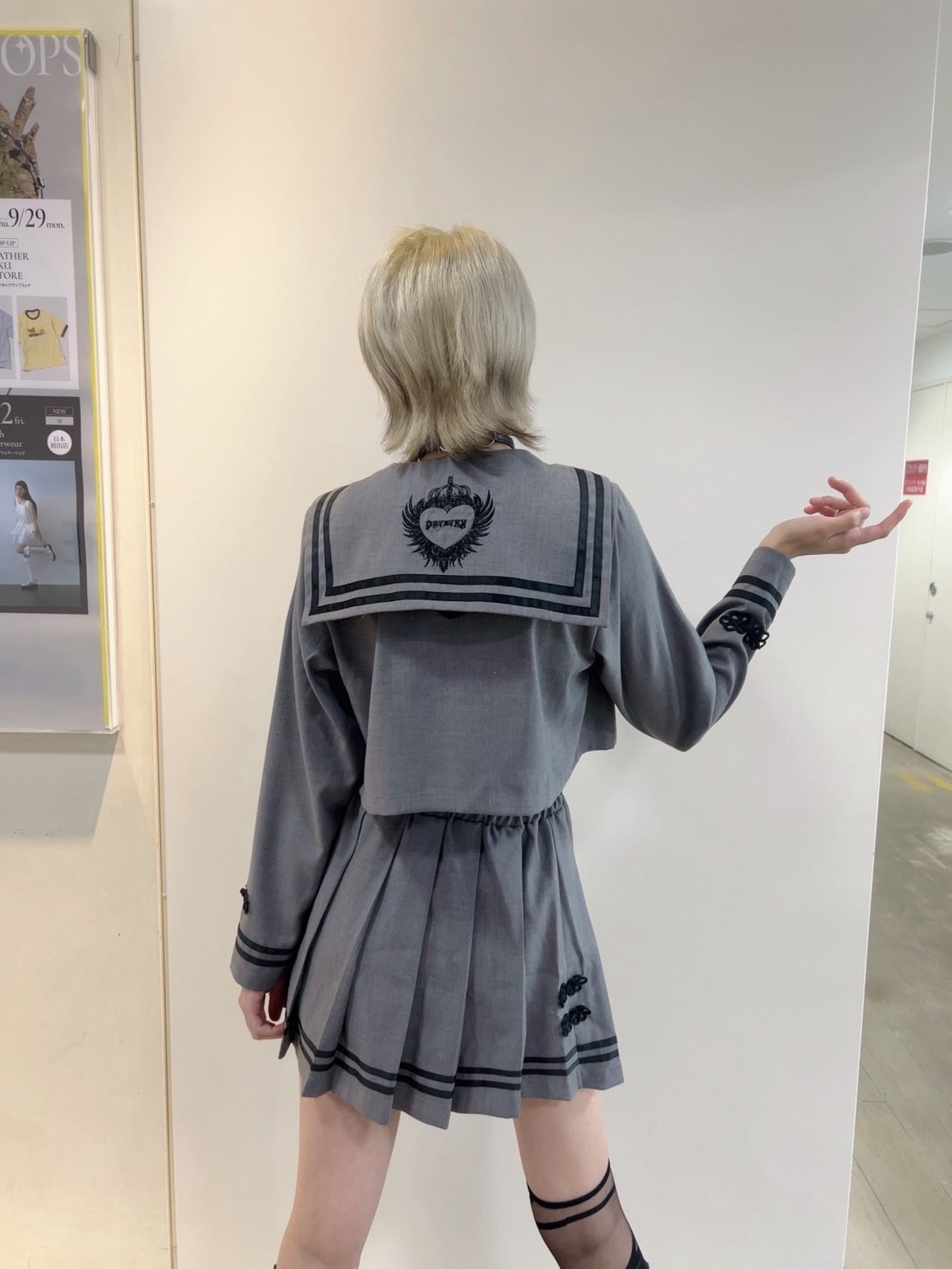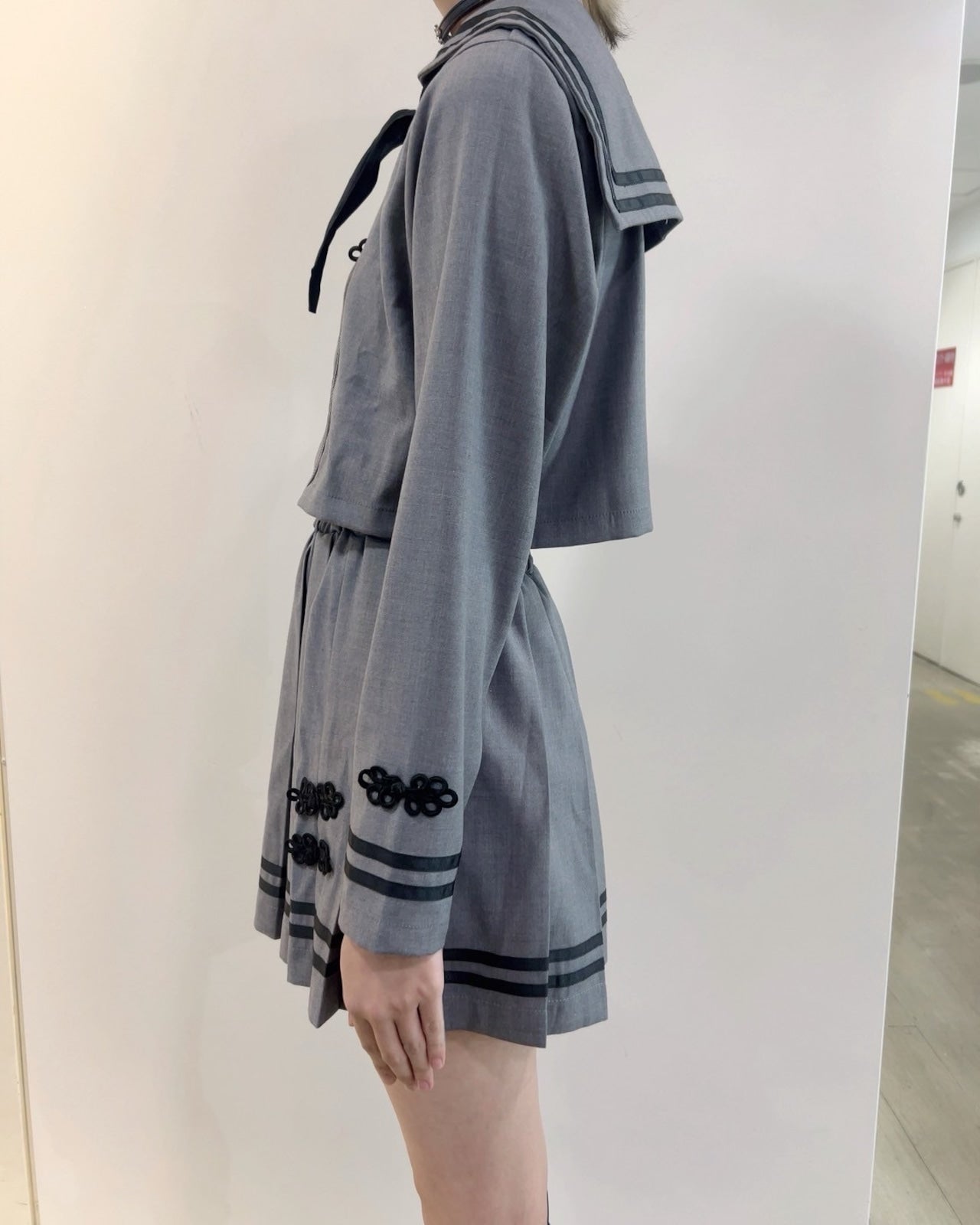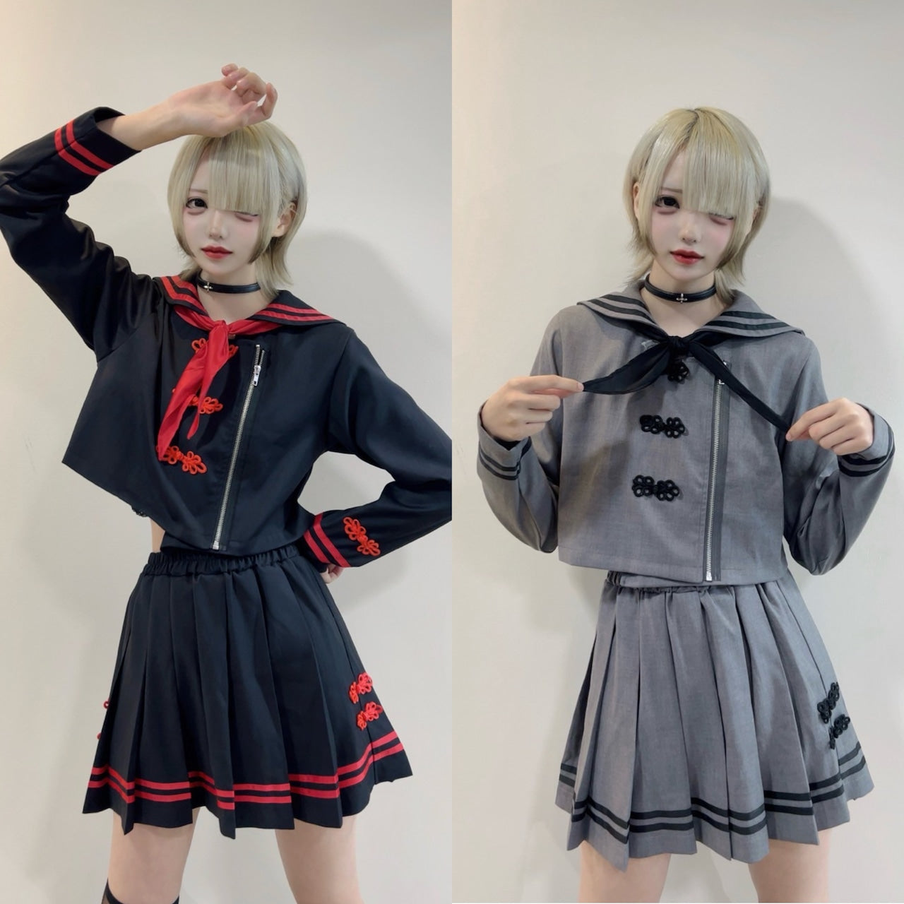 モード感と病みかわいいテイストをミックスした、個性派セーラーセットアップ。